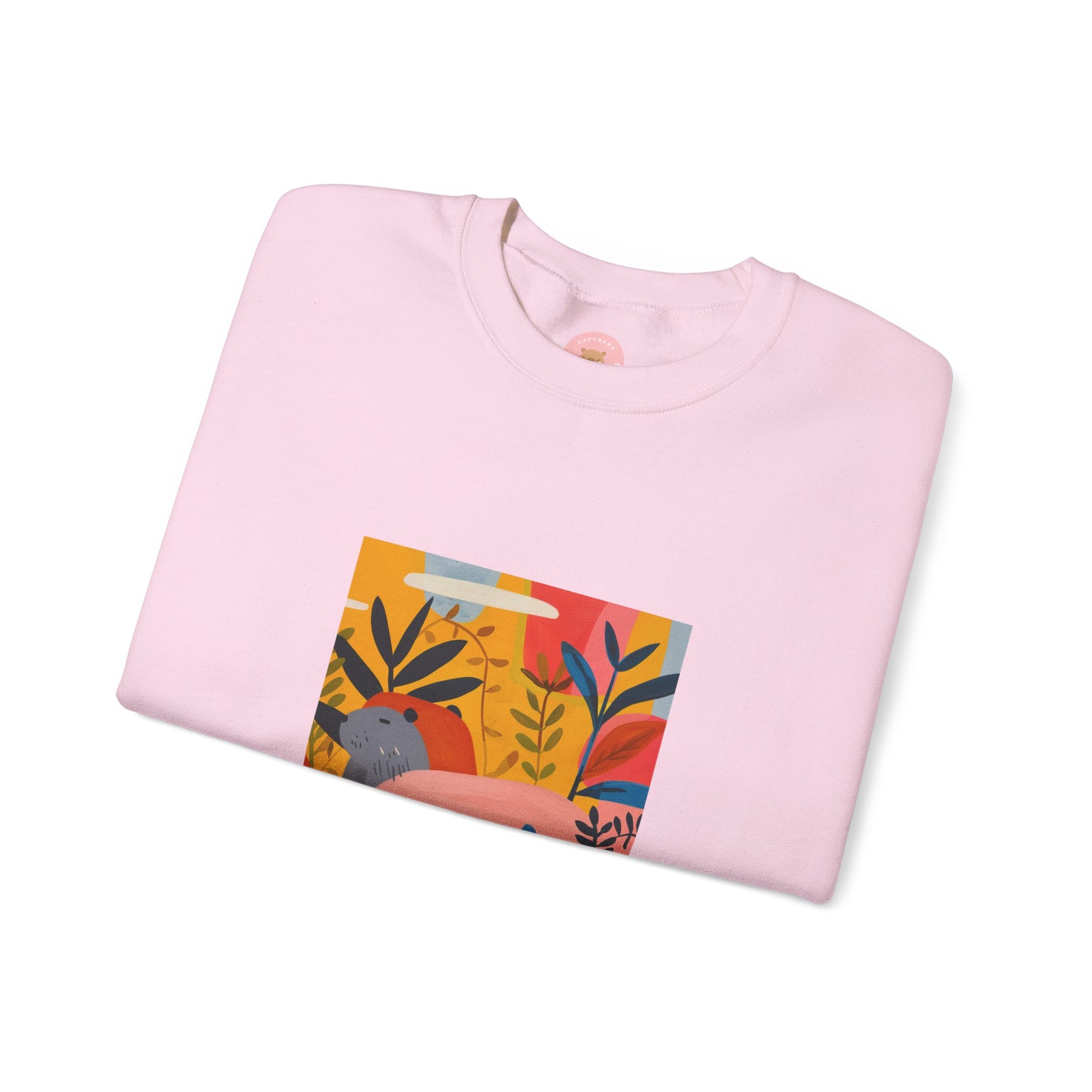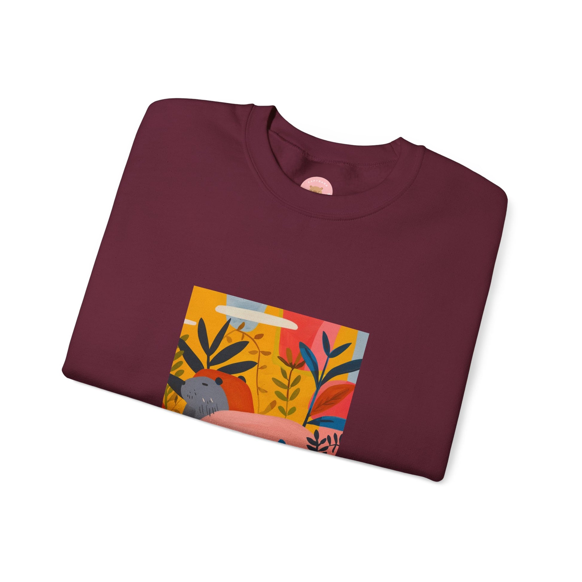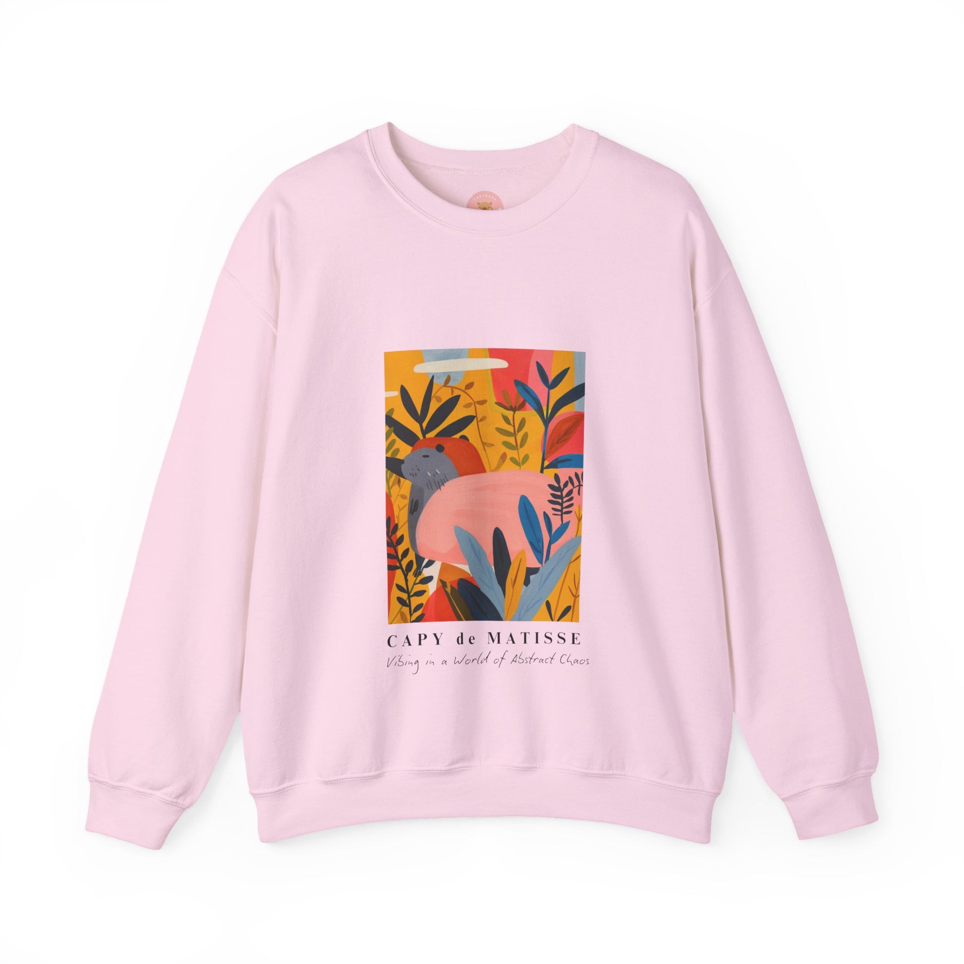 This sweatshirt features a painting inspired by Henri Matisse with a funny twist, perfect for capybara lovers and art enthusiasts. It offers a cozy and comfortable fit, making it ideal for colder months. The medium-heavy fabric blend of cotton and polyester ensures durability and warmth. Great for snuggling up at home or showcasing your unique style.