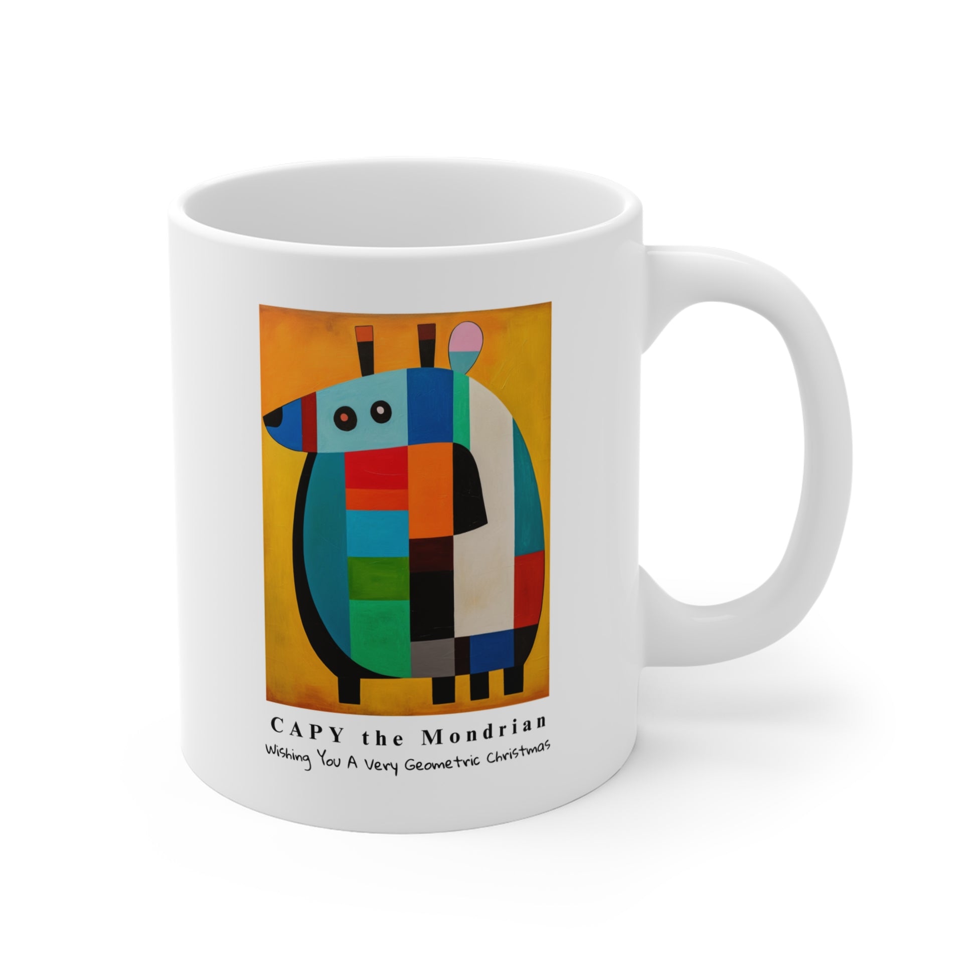 Capy de Mondrian Christmas Mug – Geometric Capybara Art Mug – Gift for Art & Animal Lovers