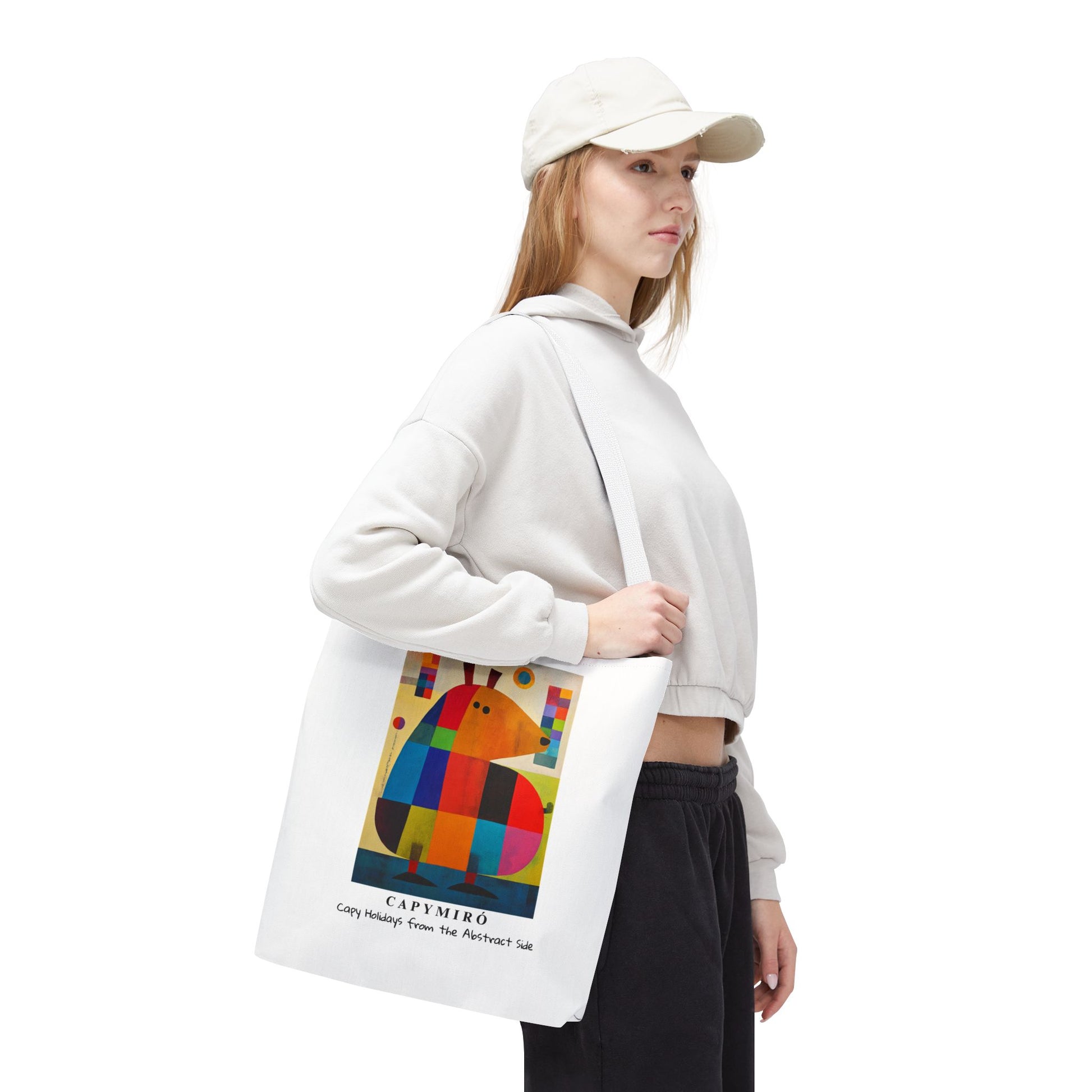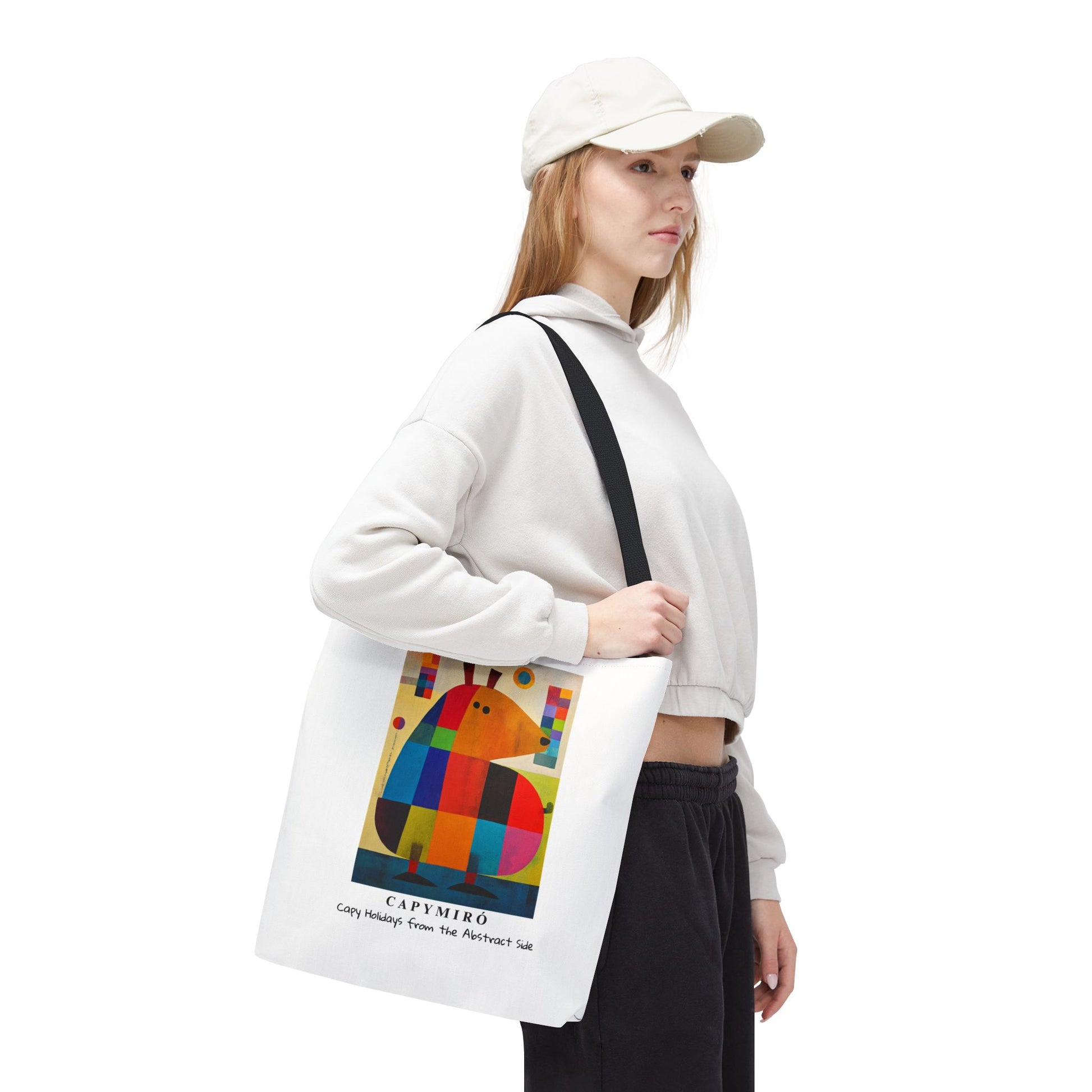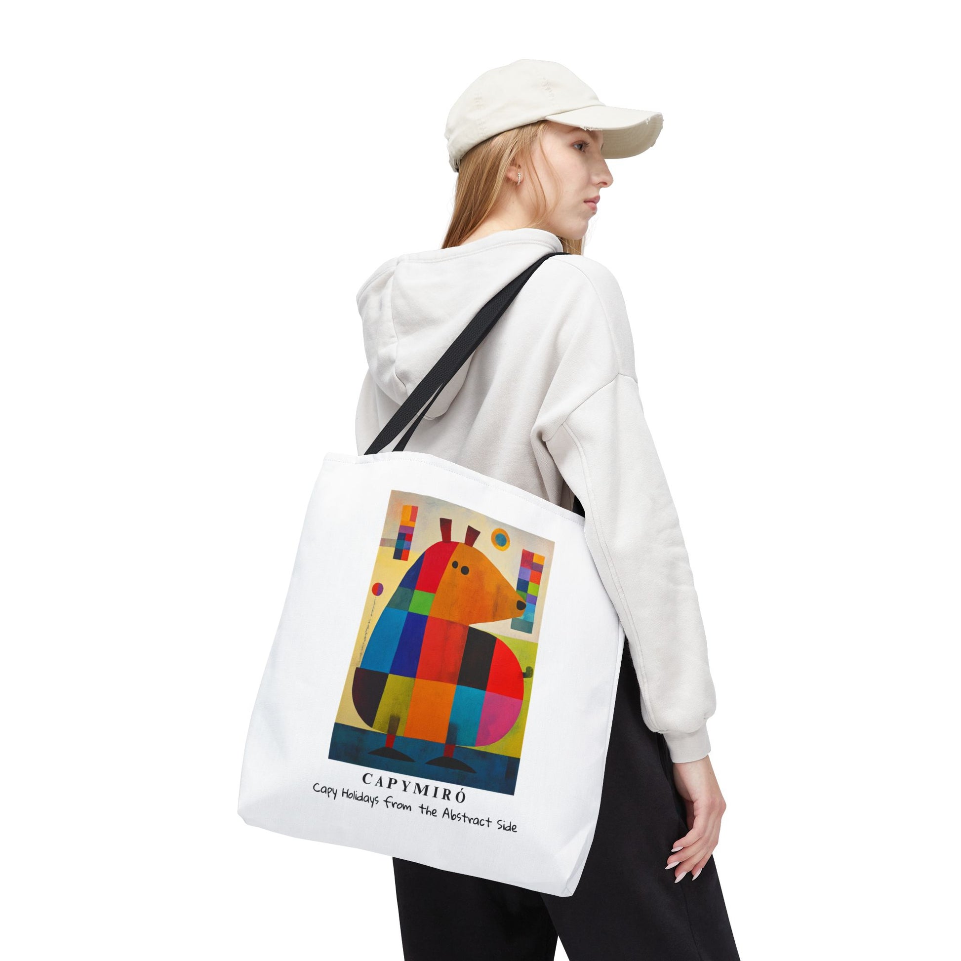 Celebrate Christmas in surreal style with the CAPY Miro Tote Bag. Inspired by the whimsical, dreamlike art of Joan Miró, this design transforms the calm capybara into a vibrant abstract masterpiece — full of playful shapes, bold colors, and imaginative charm. Paired with the festive caption “Capy Holiday from the Abstract Side,” this tote blends holiday cheer with artistic flair.