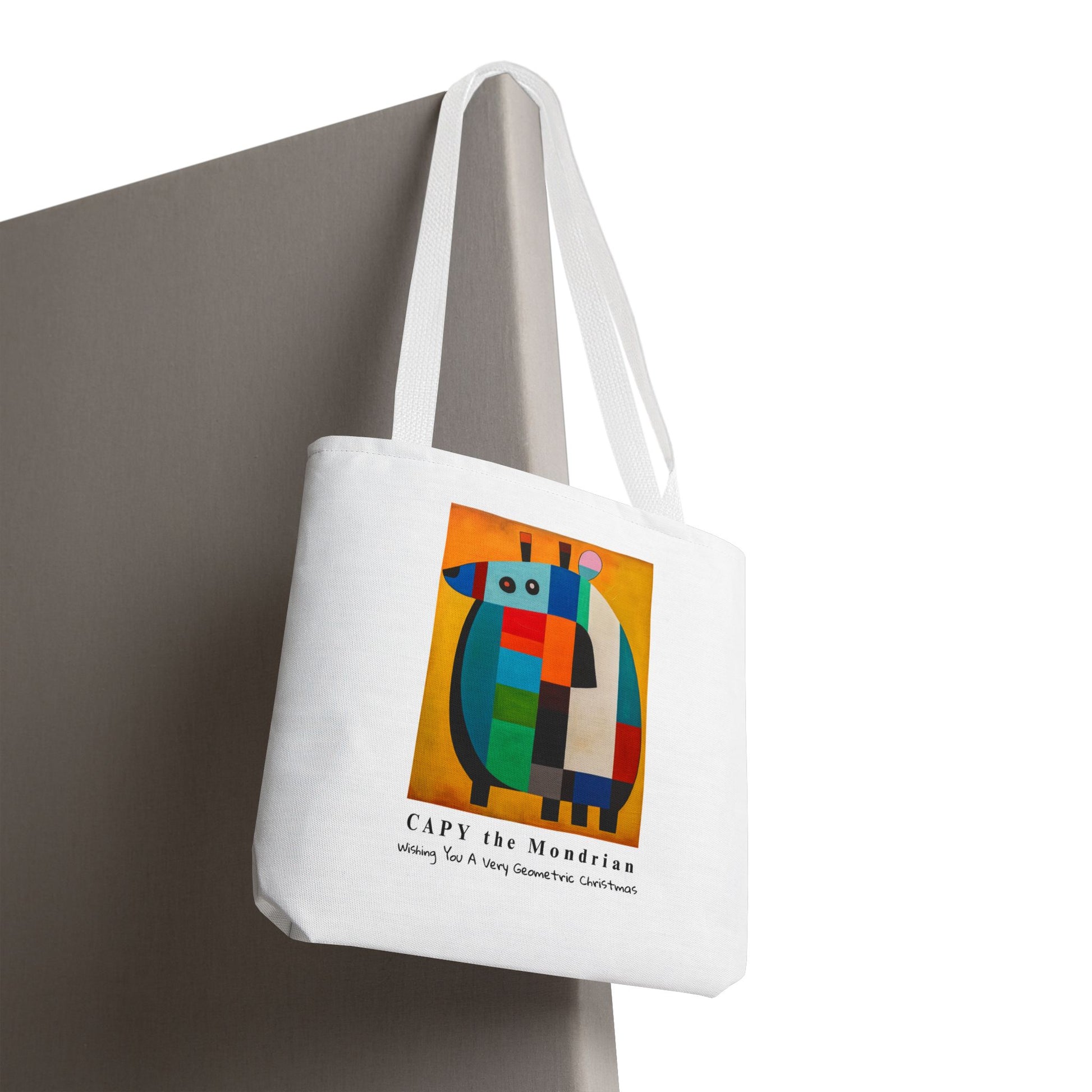 Capybara Christmas Tote Bag – CAPY the Mondrian Series – Wishing You a Very Geometric Christmas – Abstract Art Lover Gift
