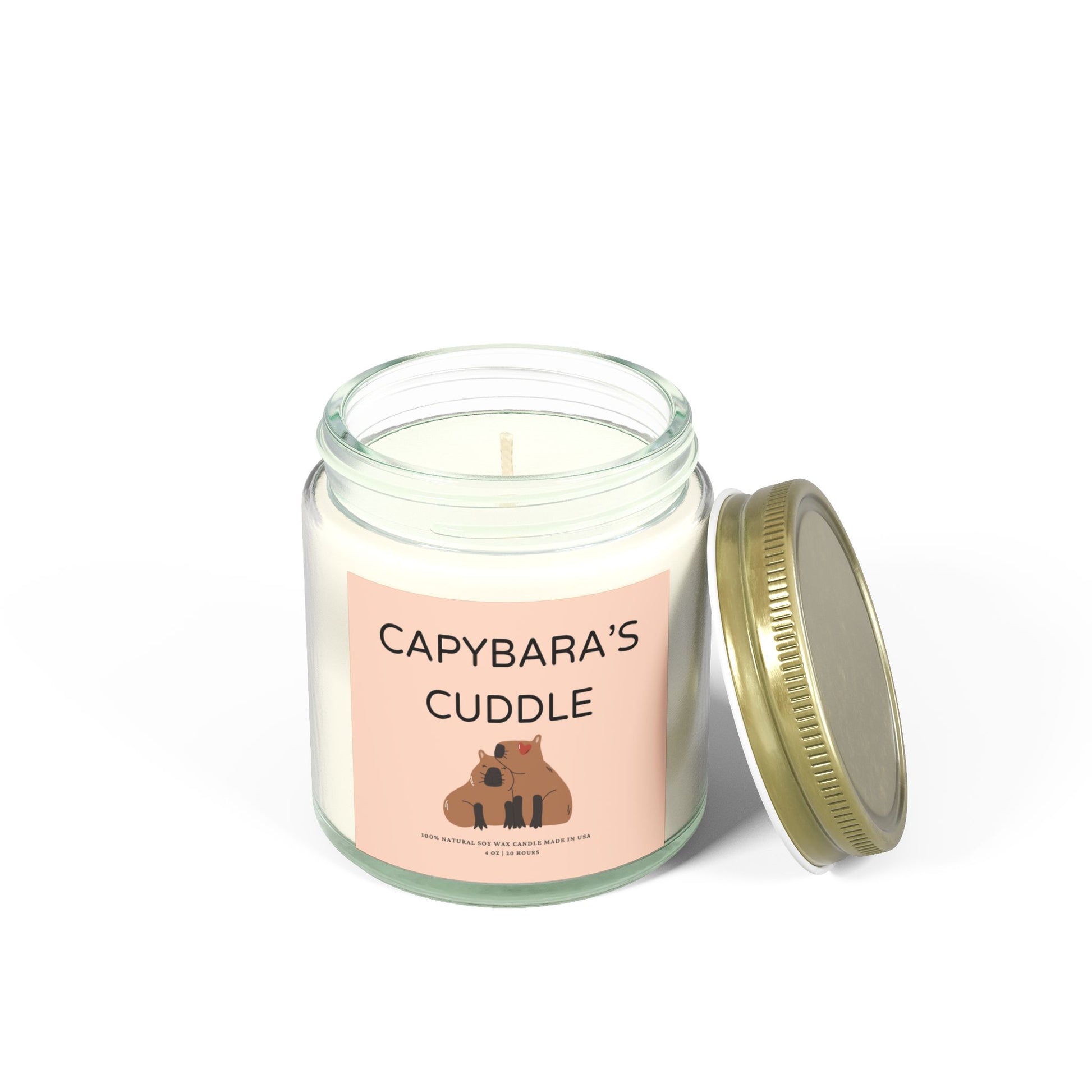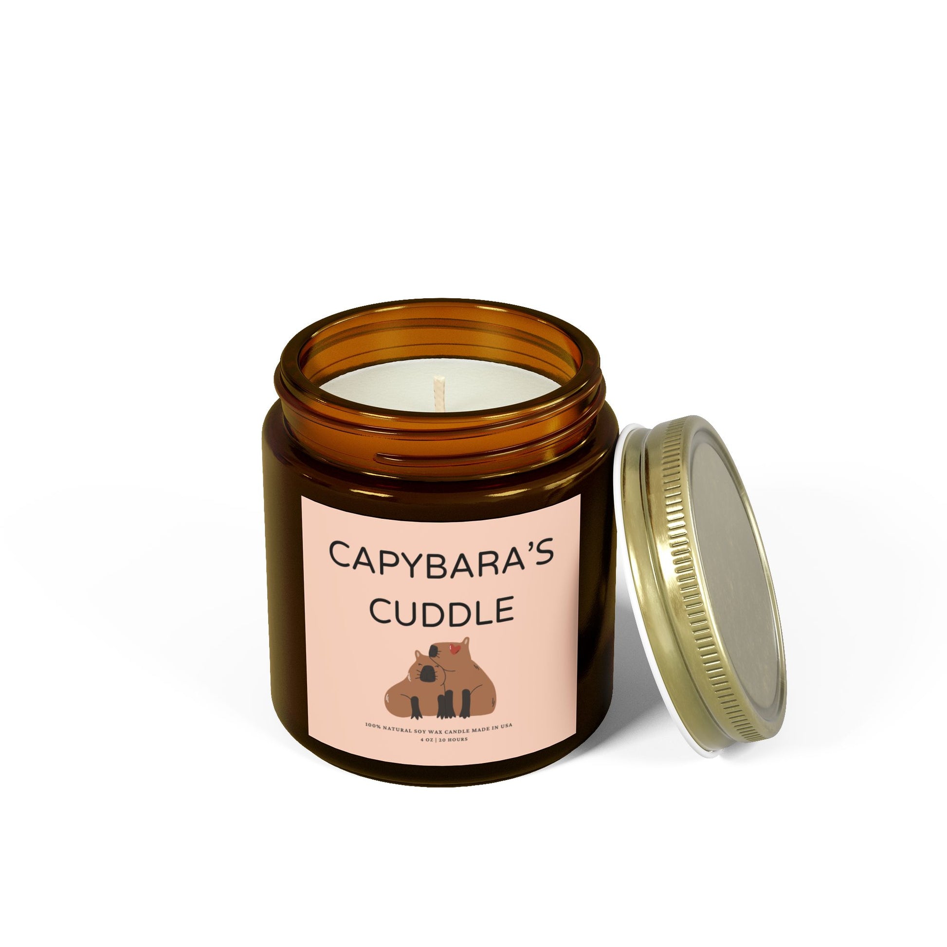 Snuggle up with CAPYBARA'S CUDDLE. A scented candle featuring two capybaras sitting sweetly, making it a perfect gift for friends or family during Christmas or special occasions. It offers a cozy and heartwarming vibe, ideal for those who appreciate unique and eco-friendly candles. Relevant for holidays, celebrations, or occasions that call for thoughtful gifting.