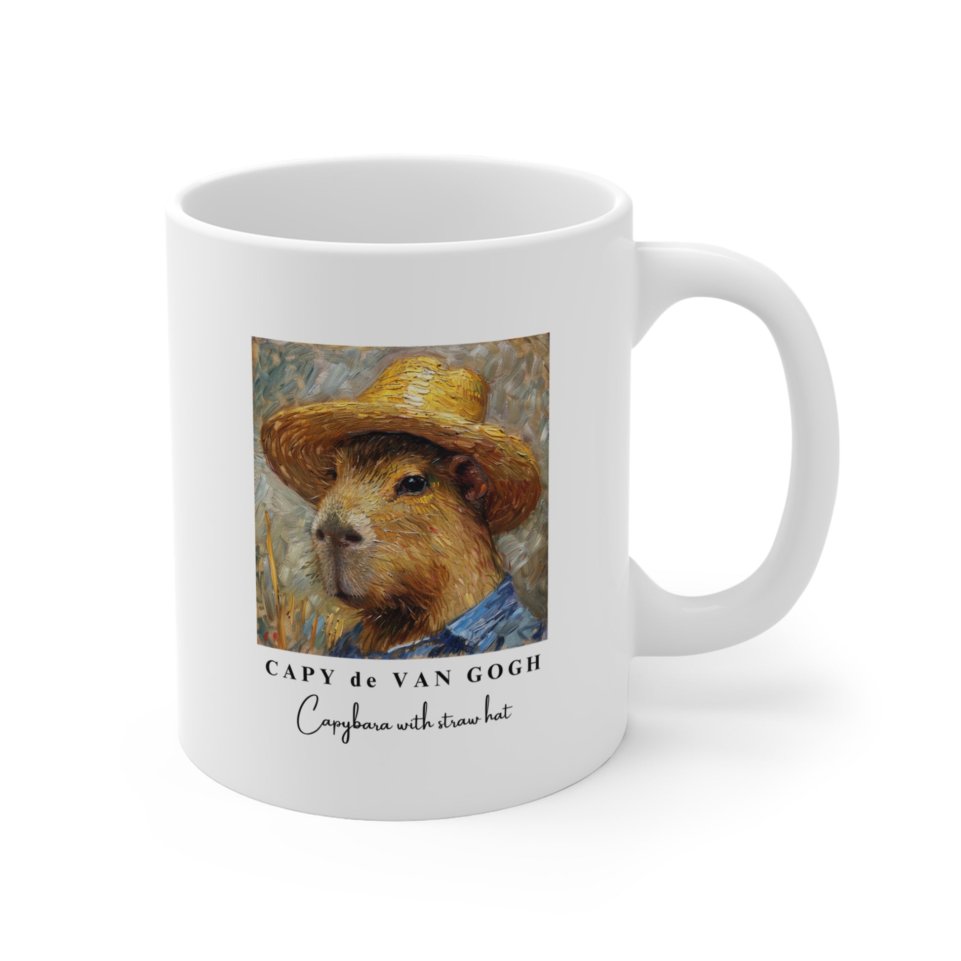 Mug Capybara with Straw Hat Van Gogh Inspired Design 11oz